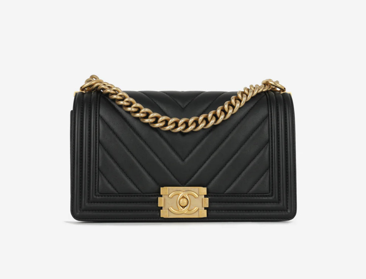 Chanel - Boy Bag Old Medium in Black chevron calfskin (2017)