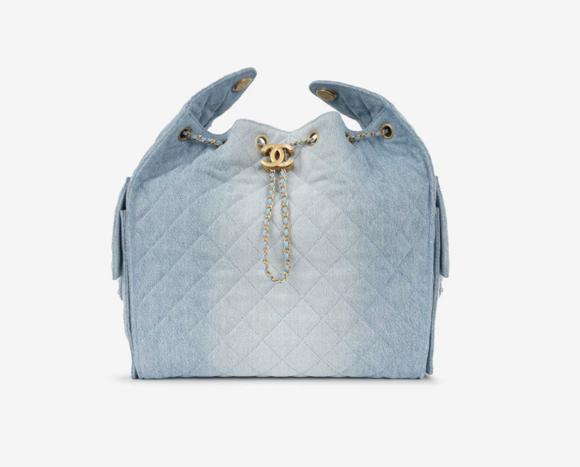 Chanel - Medium 25 Hobo Bag Light Blue Denim with antique GHW