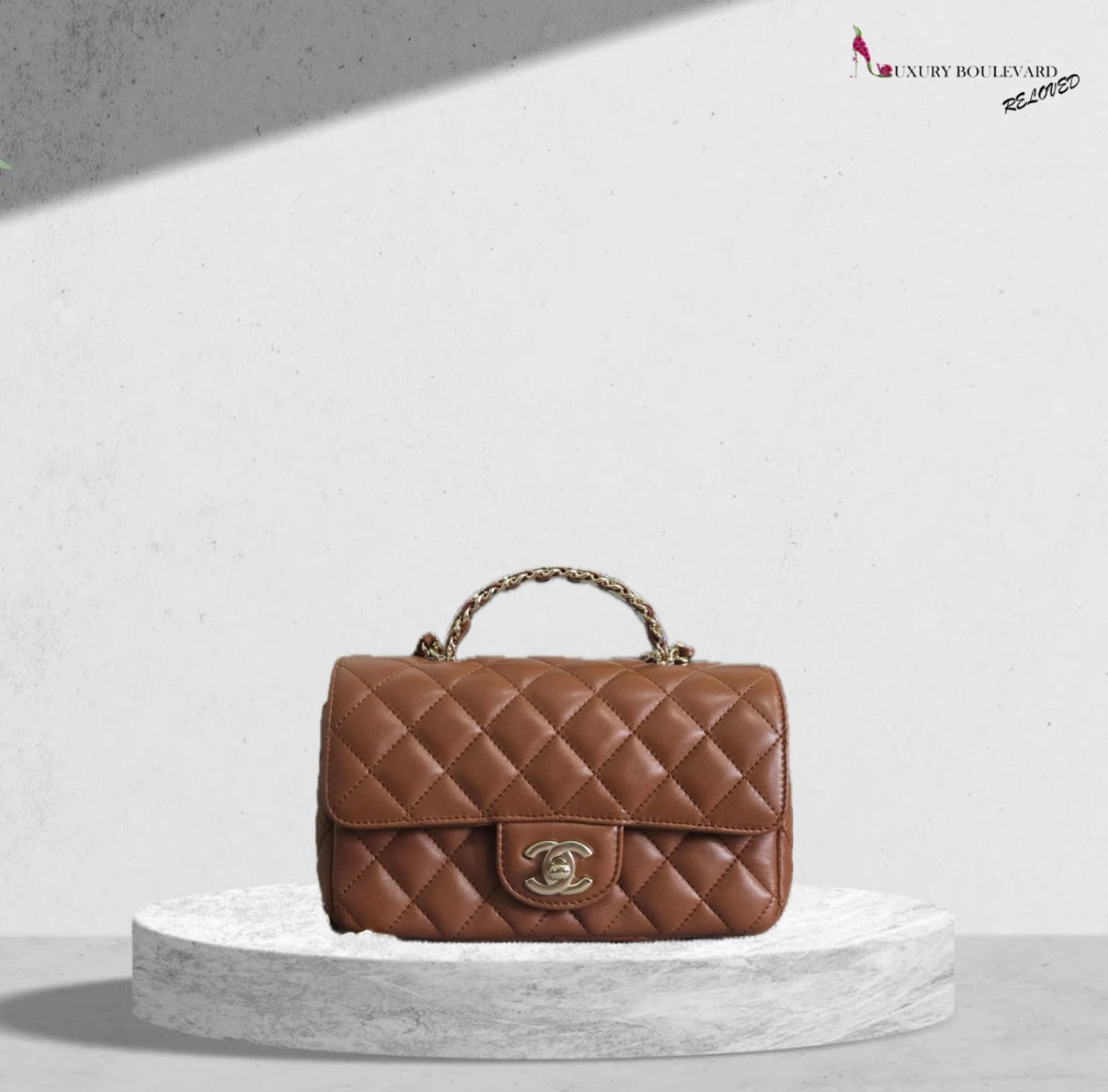 Chanel - Metiers D'Art Collection Brown Lambskin Mini Rectangular Flap Bag with Top Handle