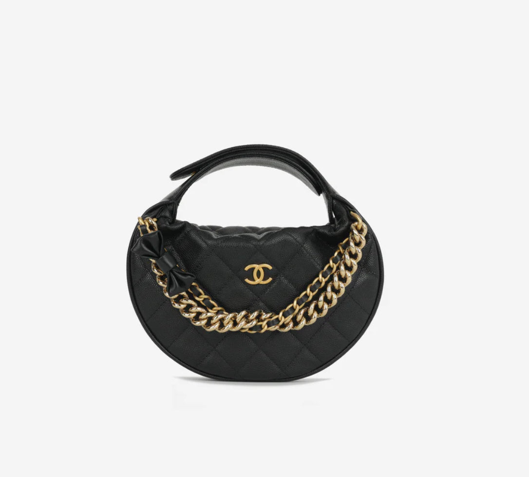 Chanel - Mini Bow Hobo Pouch in black quilted caviar with CGHW