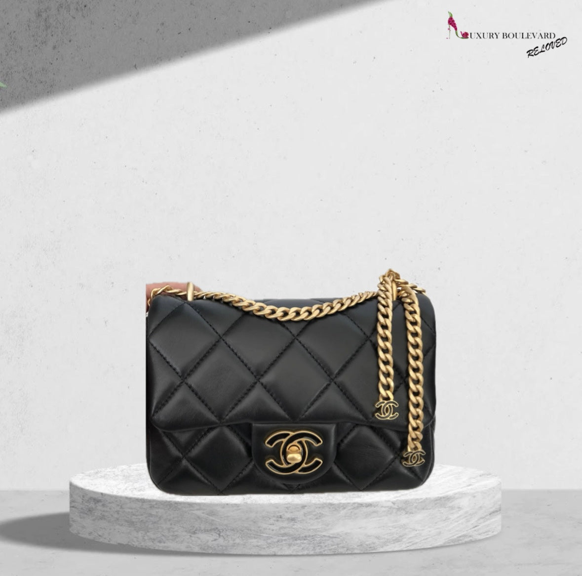 Chanel 22P Black Lambskin GHW Square mini flap bag