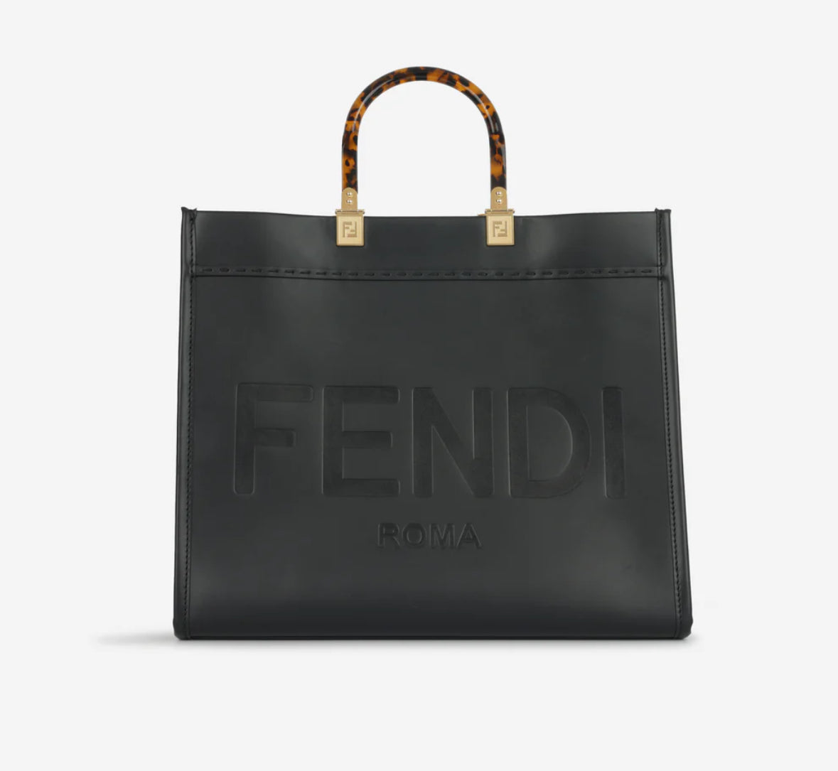Fendi - Medium sunshine tote in black smooth calfskin leather exterior with gold tone hardware