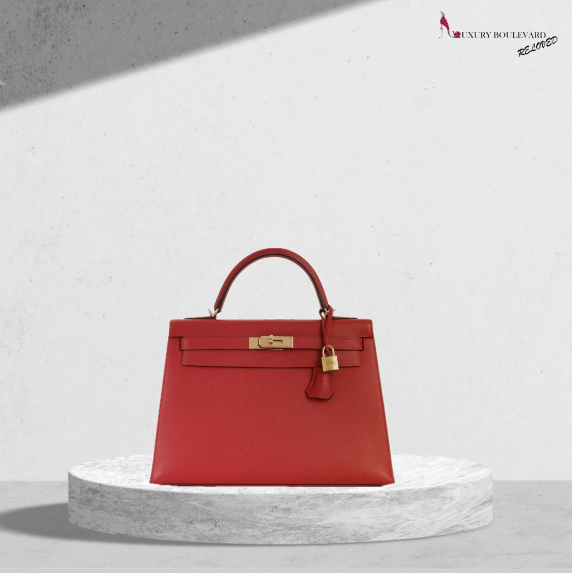 Hermès Kelly 32 Rouge Casaque Epsom Permabrass hardware D Stamp (2019)