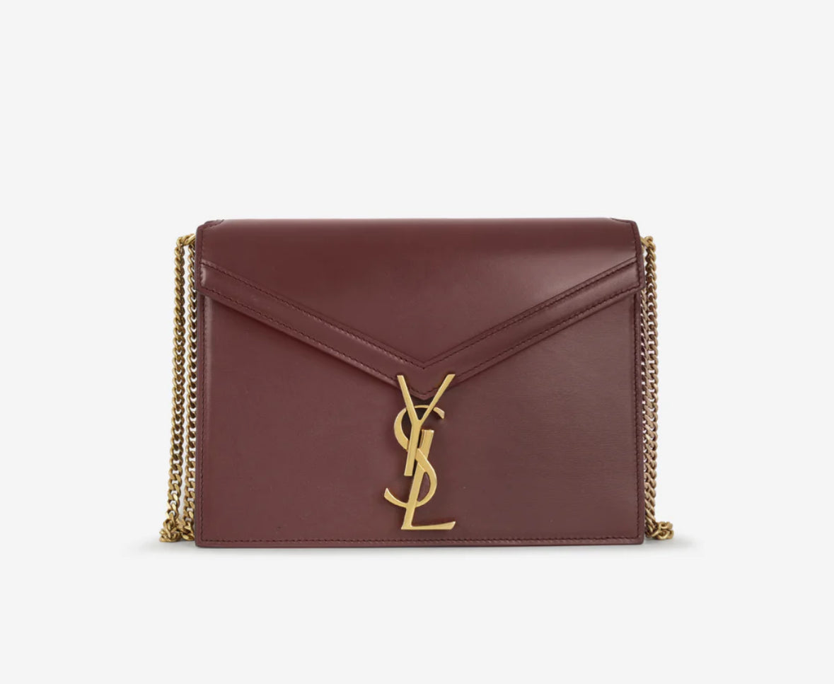 Saint Laurent - Cassandra Medium Chain Bag in burgundy smooth calfskin with gold tone hardware