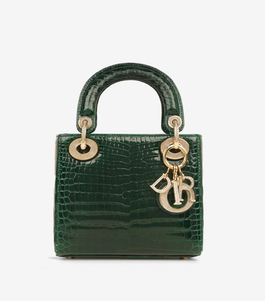 Dior - Mini Lady Dior Dark Green Crocodile Porossus exterior with CHGW (2022)