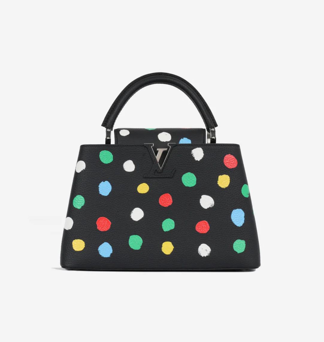 Louis Vuitton Capucines MM in Black Taurillon Bull Calf Leather with 3D Painted Dots Print with silver tone hardware