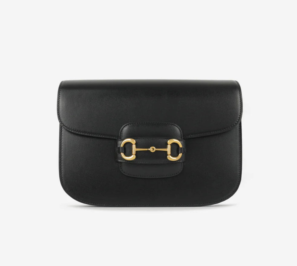 Gucci 1995 Horsebit Bag in black calfskin leather with gold tone hardware